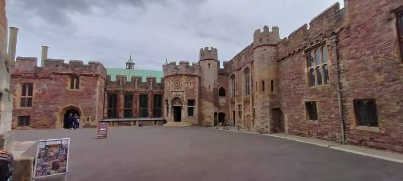 Goodrich Castle, 12,00 gratis EH, is een zeer imposant kasteelruïne waar we ruim de tijd nemen om alle hoeken en gaten te verkennen. (foto's hieronder)