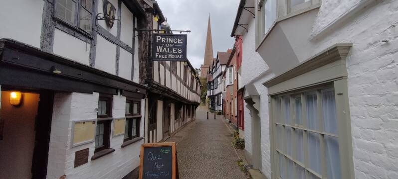 Het is al over 4 uur en Bitsmorton is niet meer haalbaar. Dan maar naar Ledbury, een historisch markettown. En ja het is mooi, vooral Church lane waar de eerste huizen van de stad, daterend uit begin 1500, nog fier overeind staan. En de markthal met de oorsprong uit 1100.