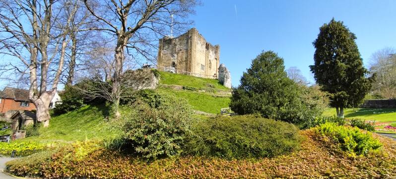 Guildford is de volgende stop. Ook een mooie plaats met dito bouwwerken zoals het ziekenhuis en the keep. Rondom de keep zijn prachtige bloemperken aangelegd.